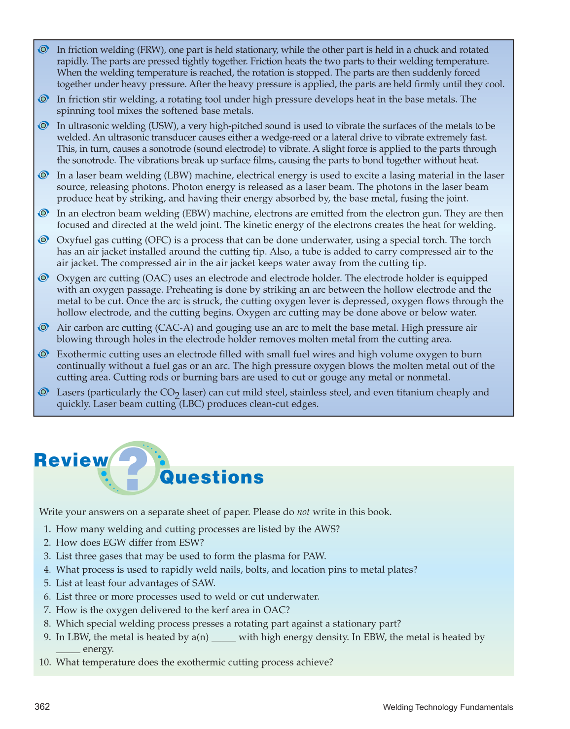 8. Which special welding process presses a rotating part against a stationary part?