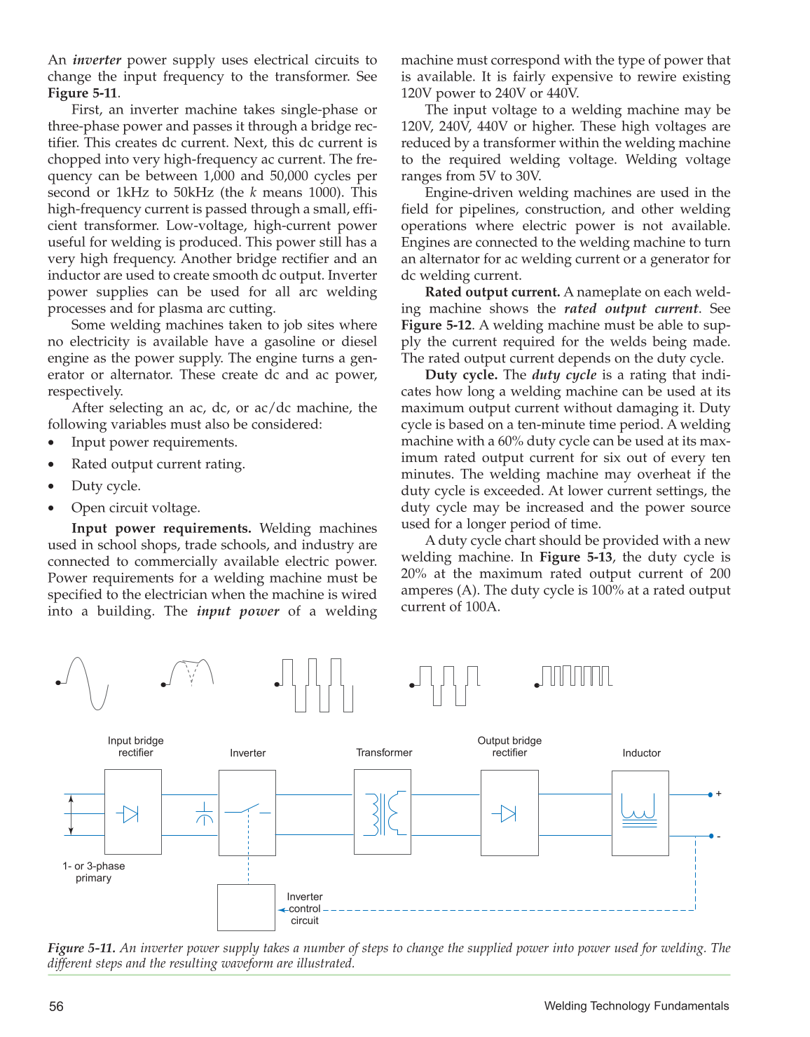 Figure 5-11. An inverter power supply takes a number of steps to change the supplied power into power used for welding. The